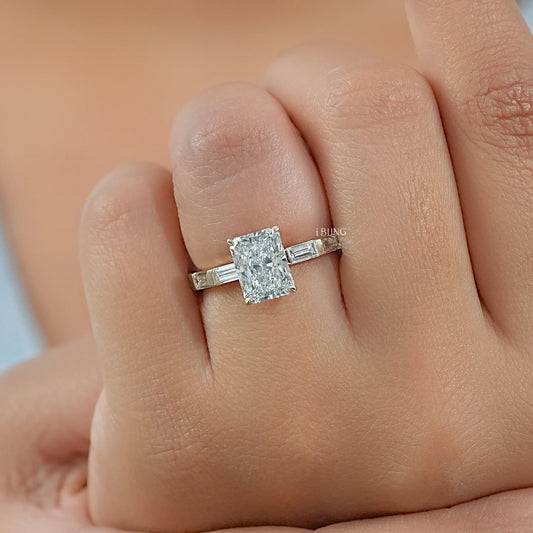 Radiant And Baguette Lab Diamond Solitaire Accent Ring