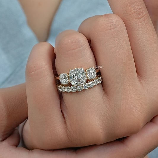 Old Mine Cushion Lab Made Diamond Bridal Ring Set