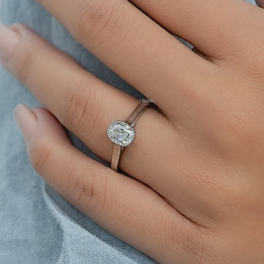 Old Mine Cushion Lab Diamond Solitaire Milgrain Bezel Ring