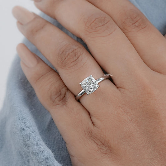 Cushion Cut Lab Diamond Solitaire Engagement Ring