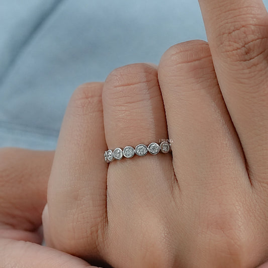 Yes, lab-grown diamond bezel bands look great on a daily basis. The bezel setting is one of the most resilient and low-maintenance choices because it firmly encloses the diamond and provides excellent protection against chipping, snags, and loosening.