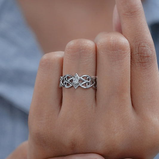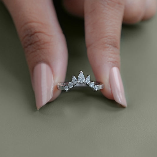 A dainty wedding band is a thin, delicate ring that is frequently created with understated beauty and minimalist design. Usually crafted from delicate metals like gold or platinum, it could have tiny diamonds or other jewels set in straightforward designs like bezels or pavé.