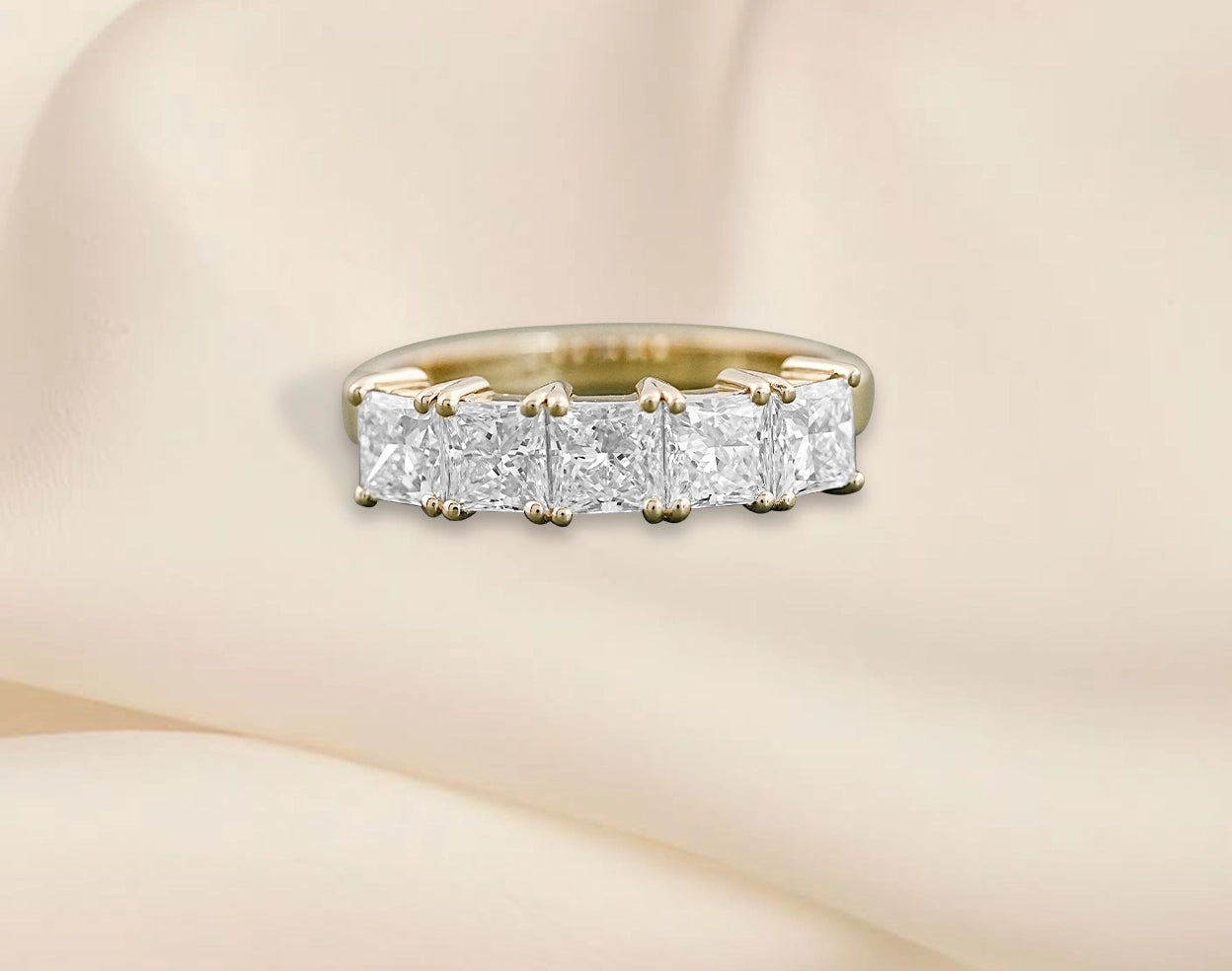 The best way to pick a princess cut diamond for a wedding band is to focus on excellent cut quality for maximum sparkle, choose high clarity to avoid visible flaws, and opt for a protective setting to guard the diamond’s sharp corners. Balanced proportions and a near-colorless grade (G-H) also enhance its brilliance and beauty.