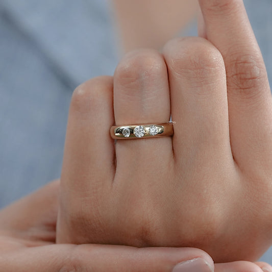 Use a gentle toothbrush and warm, soapy water to clean your round lab-grown diamond wedding band on a regular basis to keep it looking beautiful. To avoid scratches, store it separately and stay away from harsh chemicals. Get it cleaned and inspected by a professional once a year for optimal care.