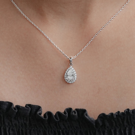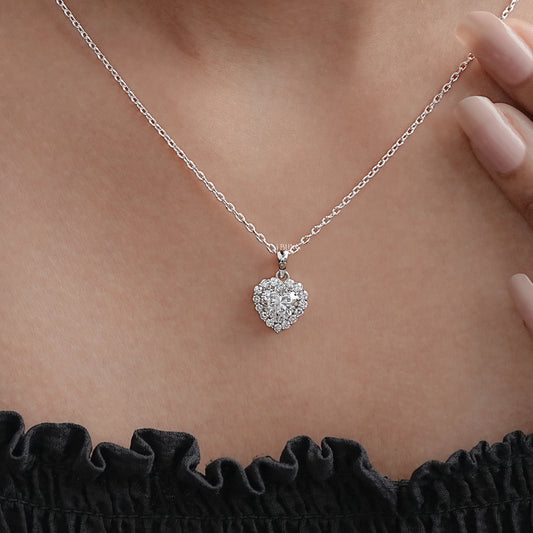 A necklace with a moissanite gemstone as the focal point is called a moissanite pendant for women. Similar to a diamond but less expensive, moissanite is a lab-created gem prized for its fire, brilliance, and durability. Its glitter, ethical sourcing, and fashionable appeal make it a popular choice for women's pendants.